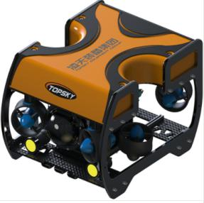 浅水域水下机器人,整机能够在水下快速移动,并实现水下六个自由度全向移动/观察,且具备自动定深悬停、自动定向巡航与定速巡航等功能;机器人可搭载水下摄像头、声呐与机械手等配件,用来在水下侦察或作业。